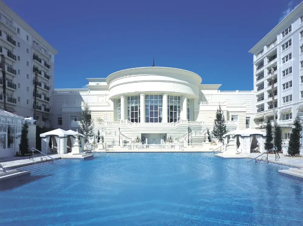 「コロニアルスタイル」をコンセプトとした敷地内では、白亜の建築が優美なひとときを演出。