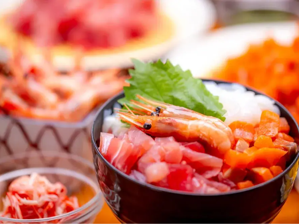 お食事では、地元・房総の旬を味わえる海鮮ディナーバイキングが大人気。新鮮な魚介を使用した「海鮮のっけ丼」や「なめろう」、握り寿司やお刺身など、五感で楽しむお料理が並びます。また、小湊実入温泉では美肌効果が期待されるお湯に浸かりながら、満天の星空と波の音に心をゆだねる極上の時間を堪能できます。