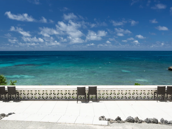 テラスの先には、「伊良部ブルー」とも言われる海が果てなく広がる絶景が待っています。